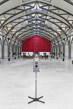 With »The Murder of Crows«, their largest sound installation to date, the Canadian visual artists Janet Cardiff and George Bures Miller continue the explorations they embarked on in the mid-1990s into the sculptural and physical attributes of sound. In the otherwise empty historical hall of the Hamburger Bahnhof, 98 loudspeakers are installed. These emit the sounds of voices, music and soundscapes generated by special stereophonic recording and replay techniques, creating a composition that has a direct physical impact on the listener. The special Ambisonic soundfield system generates a greatly intensified aural and emotional space, so that the acoustic events that transpire in the three-dimensional soundspace have a startling, disconcerting immediacy. The installation is conceived like a film or a play, but one whose images and narrative structures are created by sound alone. The three-part work, composed in collaboration with Freida Abtan, Tilman Ritter and Titus Maderlechner, is 30 minutes long.