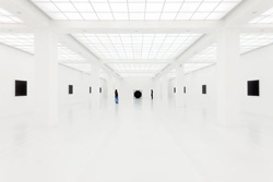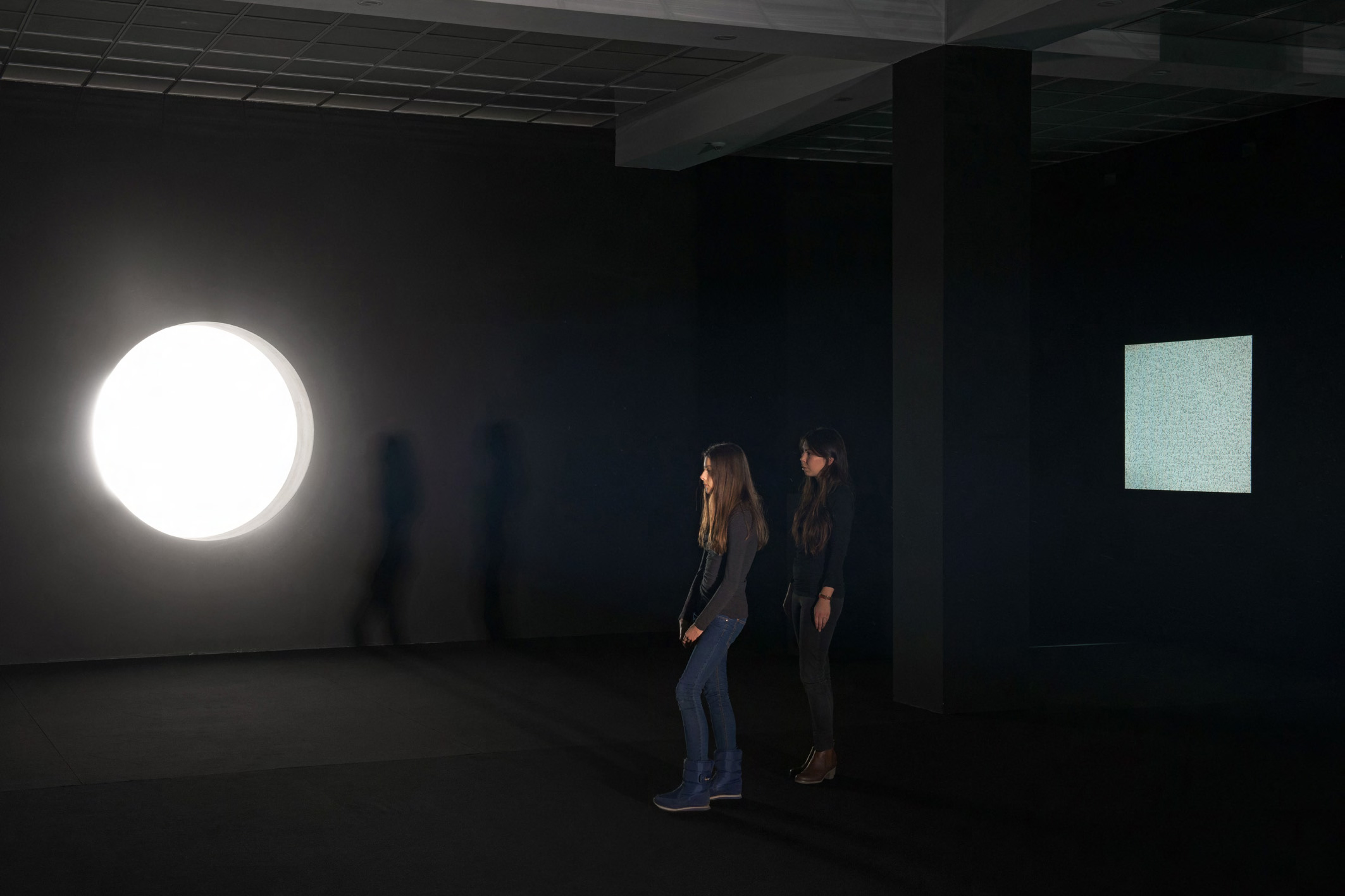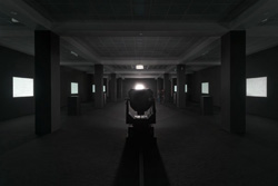 Japanese composer and visual artist Ryoji Ikeda (born 1966, lives in Paris) has conceived an exhibition for the Hamburger Bahnhof that, for the first time, compositionally unites the two symmetrical halls on the upper level of the museum’s east and west wings. The exhibition’s title »db« (abbr. for decibel) refers to this symmetry while simultaneously indicating the complementary relationship between the two exhibition spaces. Ikeda has designed the white room and the black room as counterparts, not only physically (brightness, color), but also conceptually and perceptually. The project is a composition in which time and space are shaped through the most minimal use of sound, light and visual elements. It is the artist’s first solo exhibition in Germany.
